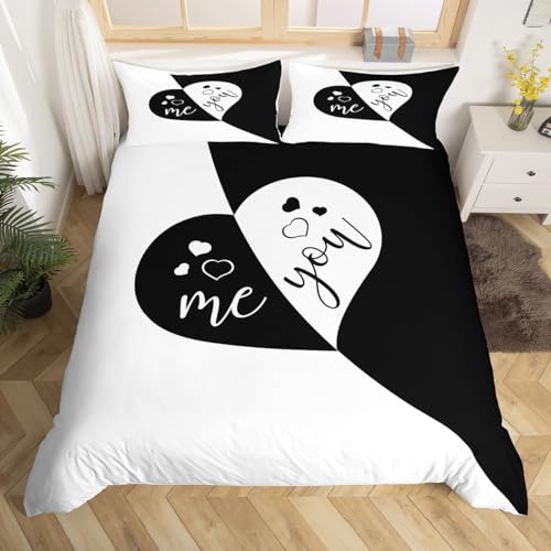 Homemissing Toi et Moi Parure de lit doré Noir Coeur Housse de Couette pour Amoureux Couple Hommes Femmes Romance Housse de Couette 220x240cm 100% Coton Saint Valentin Maison Literie Noir Blanc