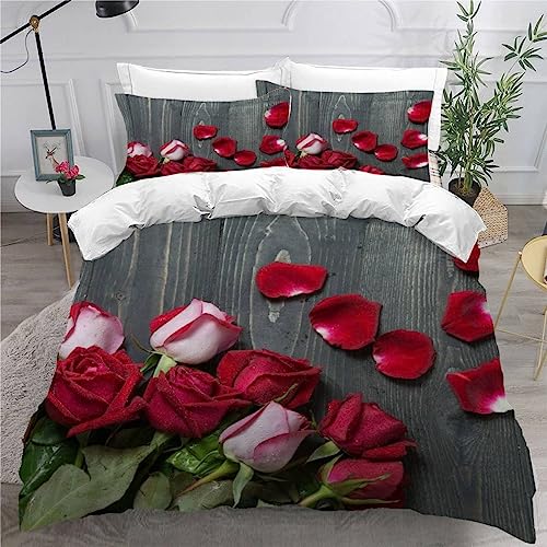 AKATIE Housse de Couette 220x240 Ado Adulte Parure de Lit Roses Belle Saint Valentin Romantique Housse de Couette en Microfibre Hypoallergique Ensemble de Literie avec 2 Taies d'oreiller