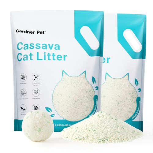 Gardner Pet Litière pour Chats à Base de Manioc,Litière Agglomérante pour Chat au Contrôle des Odeurs - Faible Poussière, Base de Plantes Naturelles, Absorption Rapide et Faible Traçage (2 x 4.1 kg)