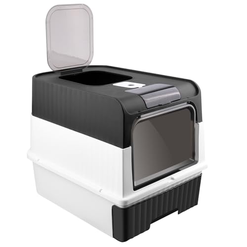 Bac a litiere pour Chat,Bac à Litiere Chat Autonettoyante,Maison de Toilette pour Chat,Bac à Litière Autonettoyante,avec Couvercle&Kit déodorant,Caisse Chat litiere, 48 * 35 * 36cm (Noir)