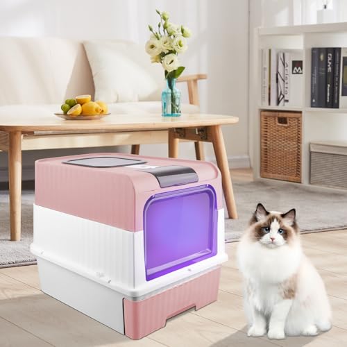 Bac à Litiere Chat Autonettoyante,Maison de Toilette pour Chat,Bac à Litière Autonettoyante,Litière Automatique Autonettoyant pour Chats avec des Rayons ultraviolets-48 * 35 * 36 cm - Rose