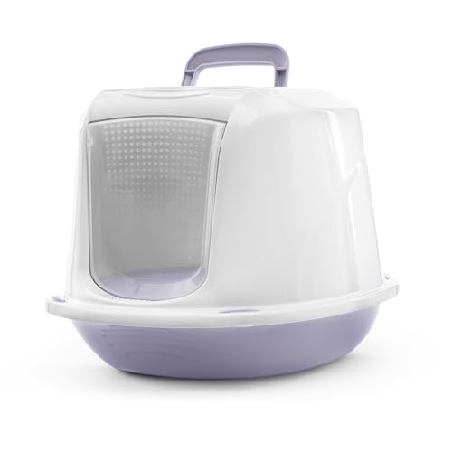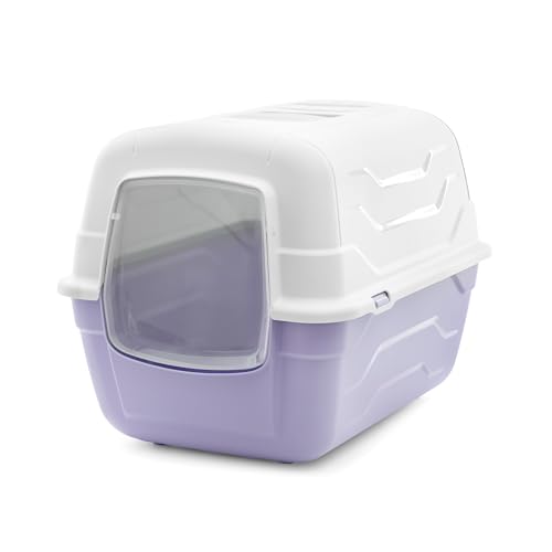 Record Arena+ Litière pour Chats fermée avec poignée et Filtre, Lilas 57 x 39,5 x 38 cm. Toilettes en Plastique Design Moderne, Facile à Nettoyer, fabriqué en Italie