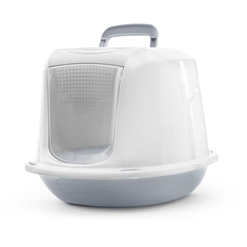 Bac à Litière Pliable pour Chaton avec Couvercle, Litiere pour Chat Fermée, Litiere Auto Nettoyante avec Pelle, Plateau Amovible, 2 Ouvertures (B-Grau)