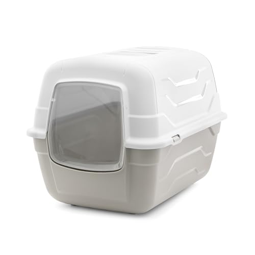 Record Arena+ Litière pour Chats fermée avec poignée et Filtre, Taupe 57 x 39,5 x 38 cm. Toilettes en Plastique Design Moderne, Facile à Nettoyer, fabriqué en Italie