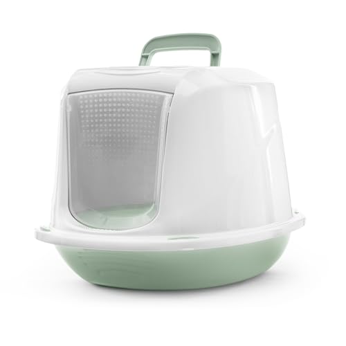 Record Arena+ Litière pour Chats fermée avec poignée et Filtre, Vert 57 x 39,5 x 38 cm. Toilettes en Plastique Design Moderne, Facile à Nettoyer, fabriqué en Italie