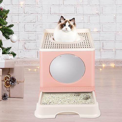 Panghuhu88 Bac à litière Pliable pour Chat avec Couvercle, Grande entrée par Le Haut, Pot fermé pour Chat avec Pelle à litière pour Chat, bac à litière Facile à Nettoyer (Rose, 50,8 x 40,6 x 38,1 cm