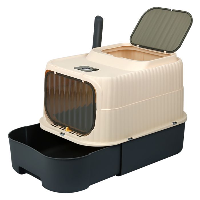 Homewell Bac à Litière Pliable pour Chat Fermée, Maison de Toilette pour Chat à 2 Portes, Plateau Amovible, Pelle, Tiroir à Litière, Bac Litiere Chat, Capacité 15 kg