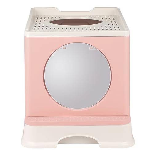 Bac à Litière pour Chat,Grande Maison de Toilette Chat Pliable avec Couvercle,Bac de Tiroir et Pelle à Litière,Portable,WC pour Chats avec Couvercle pour Grands et Petits Chats-pink-51 * 41 * 38 cm