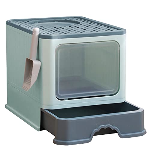 Bac à Litière pour Chat,Grande Maison de Toilette Pliable avec Couvercle,Bac de Tiroir et Pelle à Litière,Portable,WC pour Chats avec Couvercle (51 * 41 * 38CM-Vert Bleu foncé)