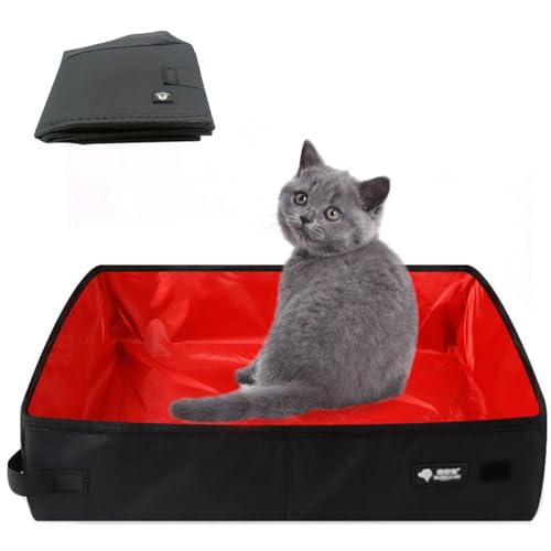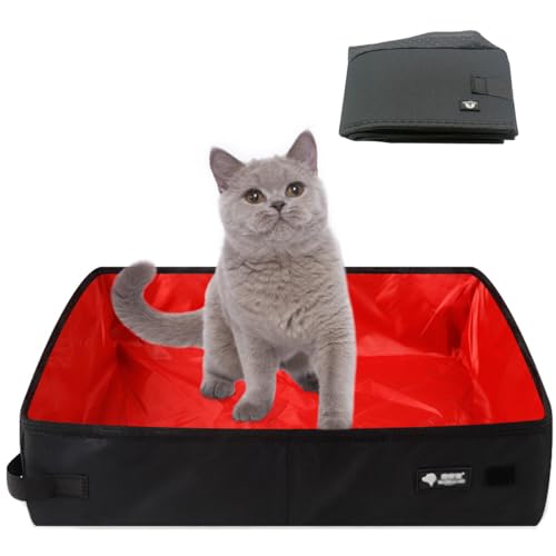 Bac à Litière de Voyage pour Chat, Litière Portable Pliable pour Chat, 50 * 40cm XL, Imperméable, Nettoyer et Doux, Convient pour Extérieures Camping Toilettes, Parc, Voyage, Maison, (XL, Rouge)
