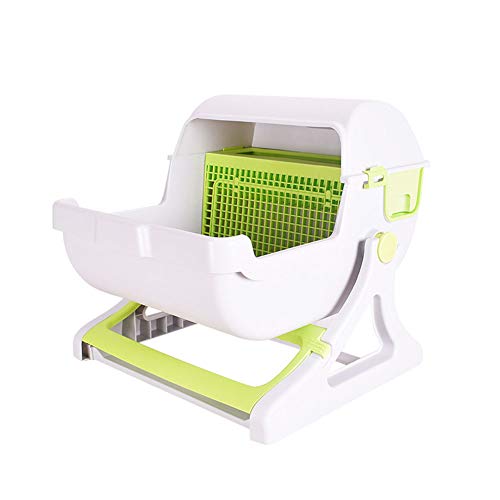 Maison De Toilette pour Chat Bac À Litière pour Chat Structuré avec Tamis Litière pour Chat Semi-Automatique Nettoyage Rapide Plateau Réutilisable,Vert