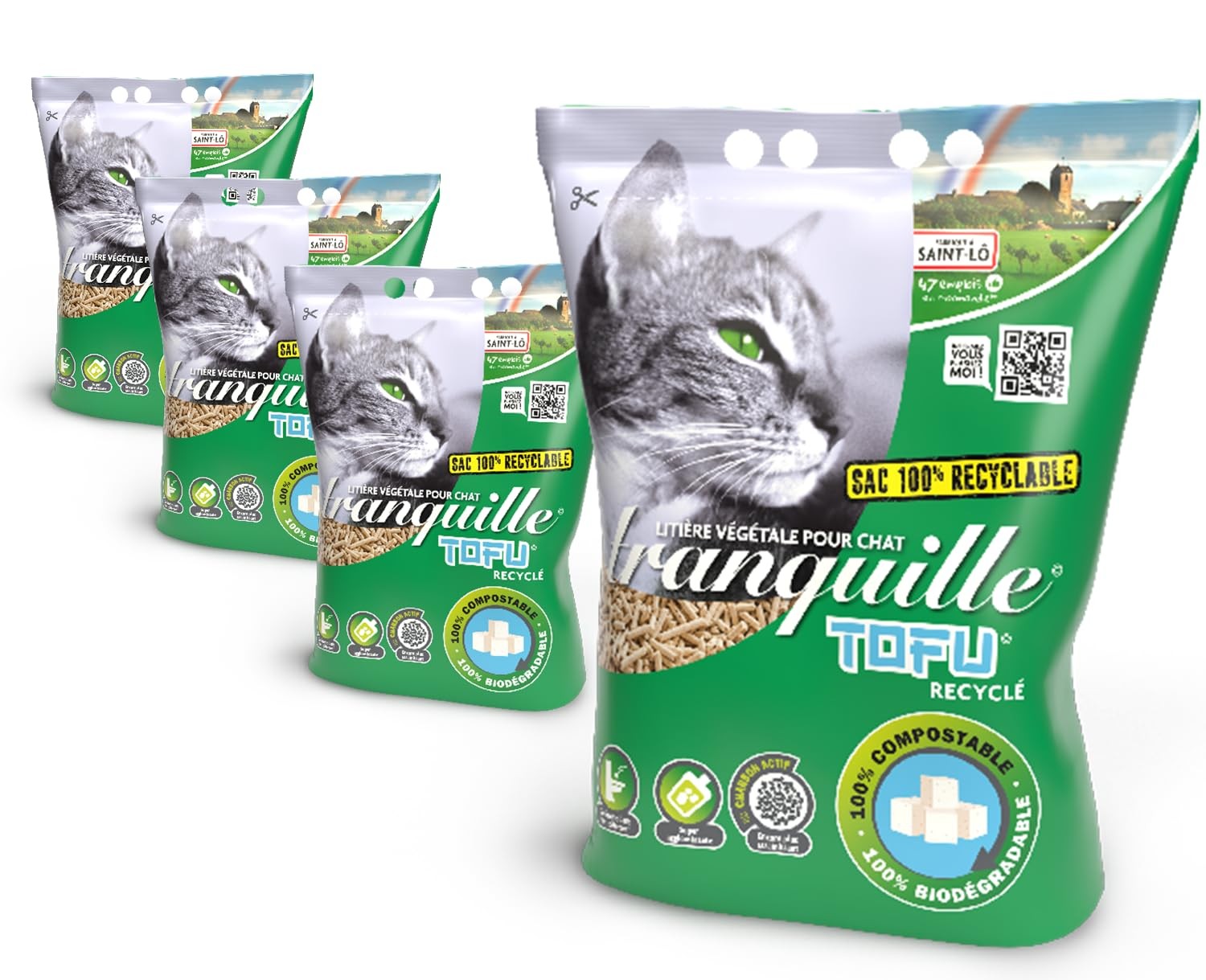 Tranquille - Litière Végétale pour Chat Agglomérante au Tofu Recyclé 4 litres - Lot de 4