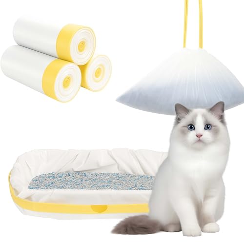 Amalan Lot de 30 Sacs à Litière XXL pour Chat (91x45 cm) avec Peigne & Gants Offerts - Sacs Anti-Griffes Extra Épais 0.03mm - Cordons de Serrage - Compatible Litières Automatiques/Grandes
