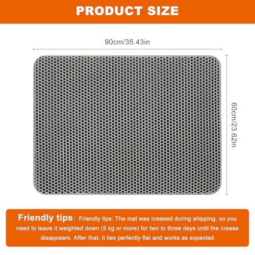Tapis Litiere Chat xxl 90X60 CM Double Couche Conception en nid d'abeille, Tapis de Litière pour Chat Non Toxique EVA, Tapis Chat Litiere Antidérapante, Lmperméable Facile à Nettoyer Gris