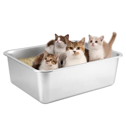 Bac à litière XXL pour chat, Grande litière pour chat 50 * 35 * 25 cm Sans odeur, Inoxydable, Surface lisse antiadhésive, Bac à litière en acier inoxydable Capacité pour un nettoyage plus facile