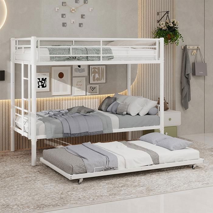 Lit superposé métal 2 x 1 place séparable en 2 lits silencieux garde-corps sécurité sans sommier 200 kg