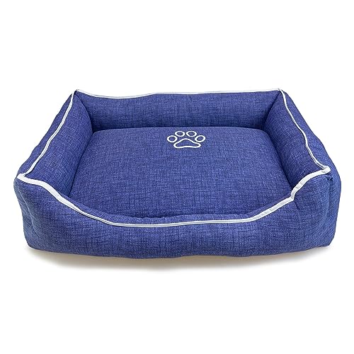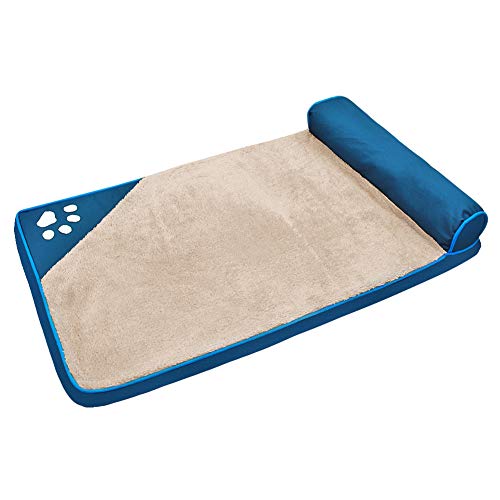 Lits pour chiens de grande taille - Niche d'hiver chaude et douce - Carré - Coussin pour chiens et chats - Husky Labrador - Bleu - L - 100 x 65 cm