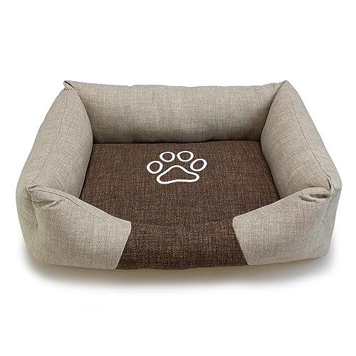 Lit carré Marron et Beige avec Empreinte 85x68x21cm - Lits pour Chiens - Accessoires pour Chiens