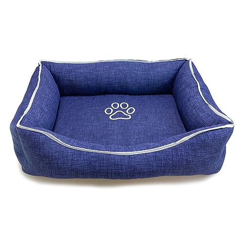 Lit carré Bleu avec Empreinte et Bordure 55x46x17 cm - Lits pour Chiens - Accessoires pour Chiens