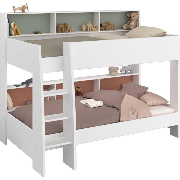 Lits superposés 90x200cmlit enfant avec deux tiroirs sur roulettes superbes fenêtres blanc + naturel