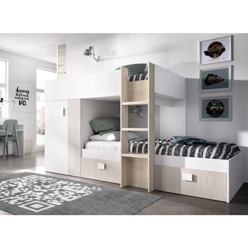Lits superposés pour enfants 90 * 200 avec bureau extensible, armoire, tiroirs, escalier, mdf, blanc