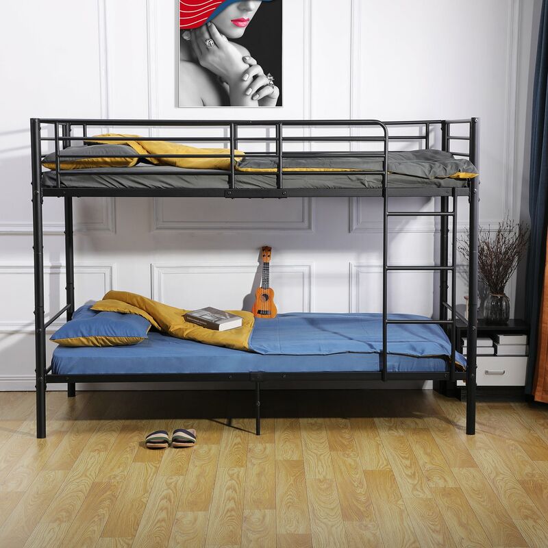 Lit superposés Lit jeune 140x200 cm Lits denfant avec lit gigogne Rampes hautes Escalier solide Gris