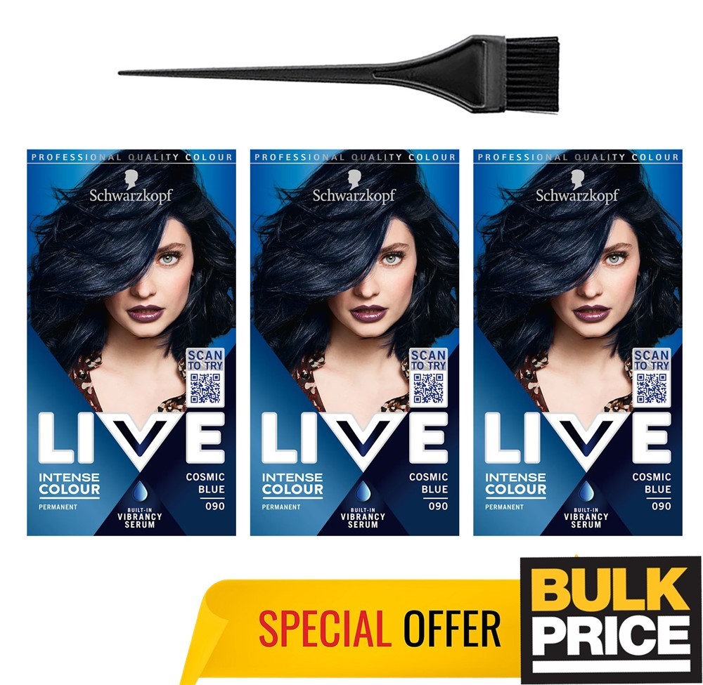 Schwarzkopf LIVE 090 Cosmic Blue Intense Color Permanent Vibrant Hair Dye Pac...