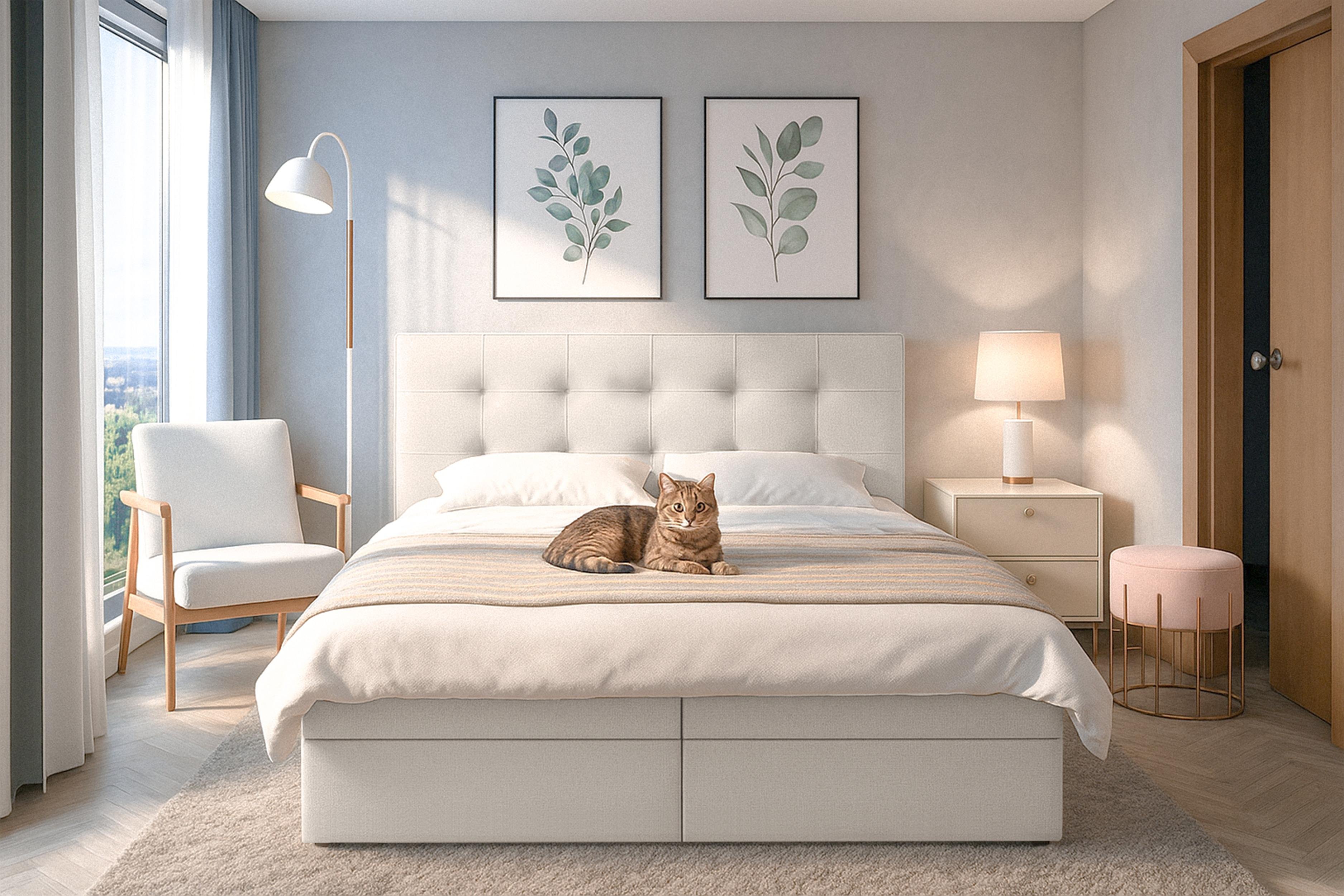 AX LIVING Belinai bed box 160 bed beige 165 x 208 cm