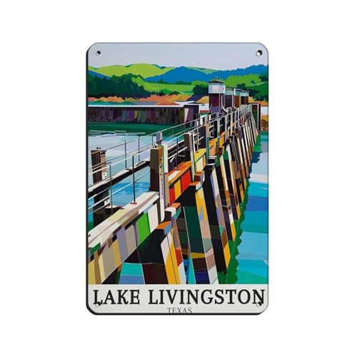 Plaque en métal vintage Lake Livingston pour pub, club, café, bar, maison, décoration murale rétro 20 x 30 cm