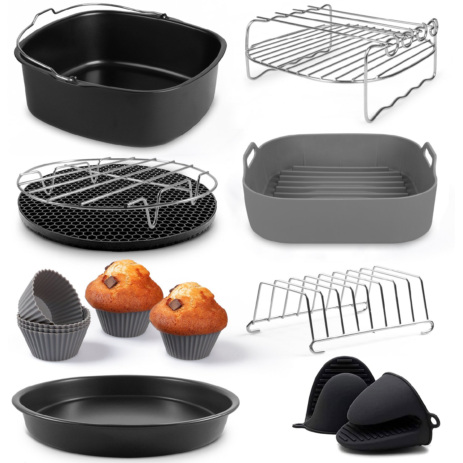 Fentic Accessoires friteuse à air chaud - 19 pièces - Convient pour XL et XXL Air Fryer - Moule en silicone pour friteuse à air chaud et livre de recettes électronique inclus