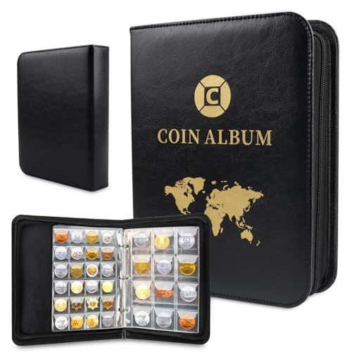 Classeur Pieces de Monnaie, 360 Pochette Album Pieces de Monnaie Collection, Album Piece 2 Euros, 30mm - 40 mm livre Pieces de Monnaie Collection avec Fermeture éclair(Noir)