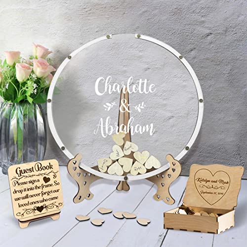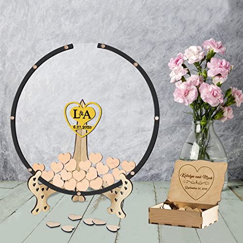 Certykllp Livre d'or de Mariage personnalisé – Livre d'or Rustique personnalisé pour invités à Signer – Cadre avec cœurs pour réception, décorations de Mariage, Remise de diplôme, fête prénatale