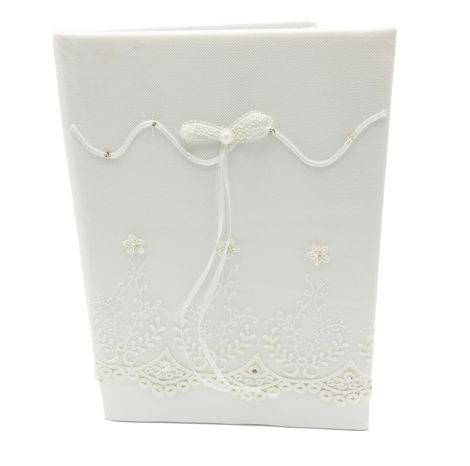 Livre d'Or Mariage Blanc Ruban Croisé Strass NEUF