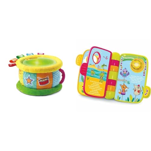 VTech - Tambour Lumi Magique - Jouet Musical Bébé/de 6 Mois à 3 Ans – Version FR & P'tit Livre Enchanté - Mes Premières Comptines, Livre Enfant Parlant et Musical dès 6 Mois - Version FR