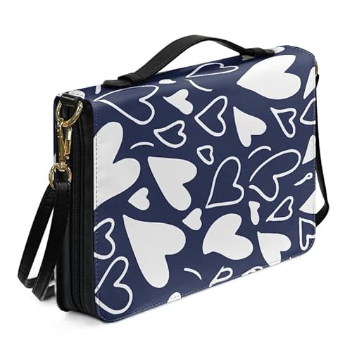 Kuiaobaty Étui pour livre de la Bible avec poignée en forme de coeur pour femme, bleu et blanc, impression romantique, moyen avec compartiments pour stylo et téléphone, Motif en forme de cœur.,
