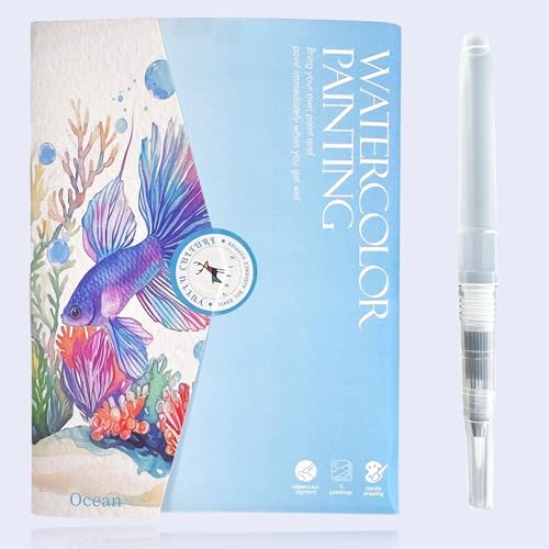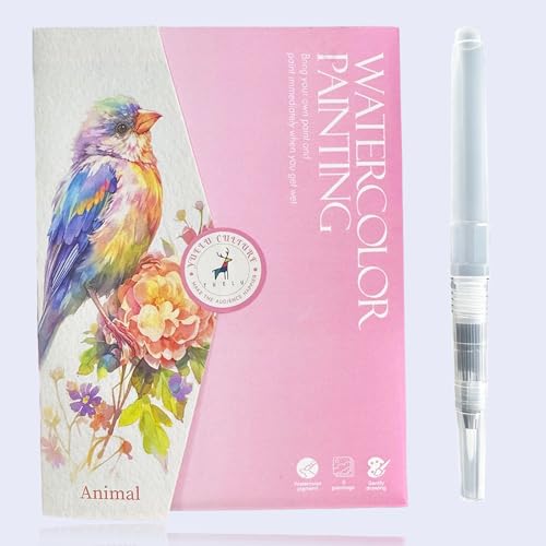 Glvomazty Cahiers D'aquarelle Livre, Carnet Coloriage Adulte Anti Stress, Livre-Magique-Eau Peinture Avec Pinceaux et 16 Couleurs pour Débutants Adolescents Adultes Cadeau Creatif