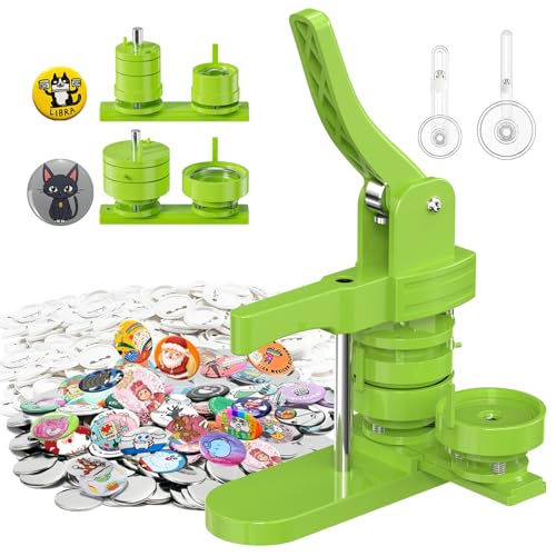 VEVOR Machine à Badges de 75 mm, Presse à Badges Épingles Personnalisés en Plastique, avec 100 Kits de Consommables, Coupe-cercle et Livre Magique, Poignée Ergonomique, pour DIY Épinglettes, Vert