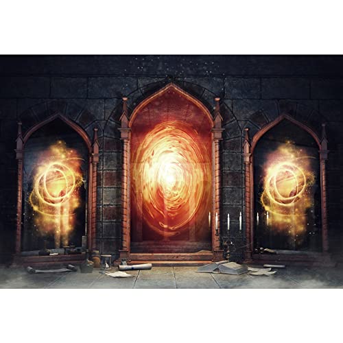 Aoihrraan 1,5x1m Miroir Magique Toile de Fond Sombre Vintage Château Grunge Brique Bougies Livre Magique Arche Porte Photographie Fond Enfant Filles Garçons Adultes Portrait Artistique Photo Prop