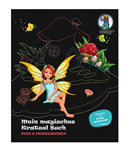 URSUS 24530001F Mon livre magique à gratter fée et princesses Motif fée et princesses 21 x 26 cm, Coloré