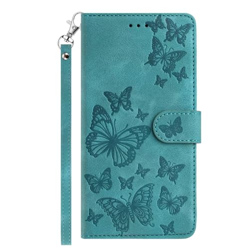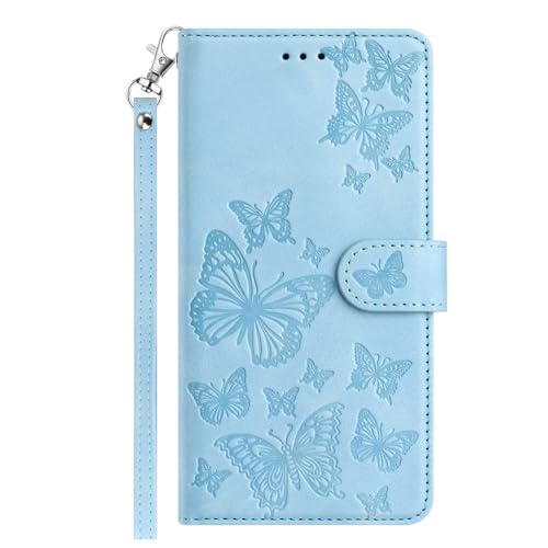 Coque pour Motorola Moto G67 Power 5G, Etui papillon Anti-Rayures Coque PU en Cuir Portefeuille Livre 8 Fentes Cartes, Etui en Cuir Synthétique Fonction Stand pour Motorola Moto G67 Power 5G bleu ciel