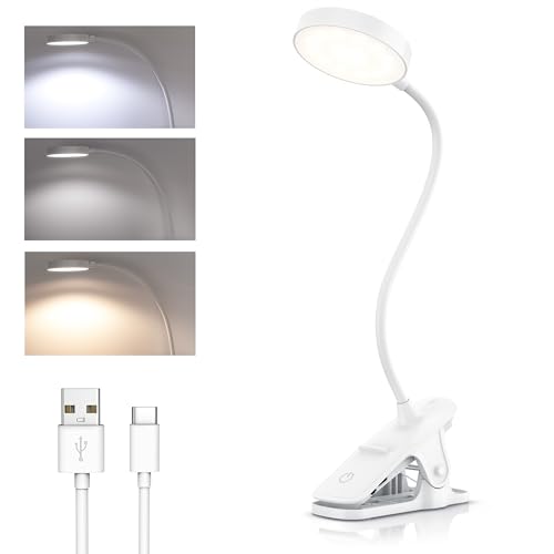 TOPBATHY Lire Clip Lampe Led Rechargeable Usb Avec Clip MagnéTique LumièRe De Lecture À Trois TempéRatures De Couleur Et Intensité Ajustable Petite Lampe Portable Pour Livre Et Bureau