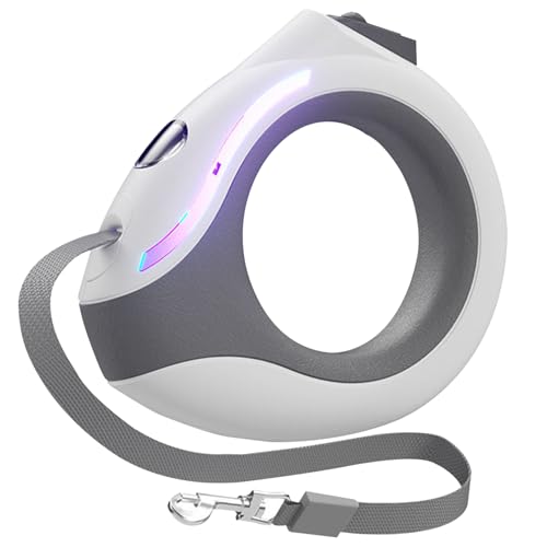Lâche de Chien rétractable Rechargeable avec la lumière LED, Laisse de Chiens à poignée Ronde de 118 Pouces avec localisation de la Respiration Ergonomique