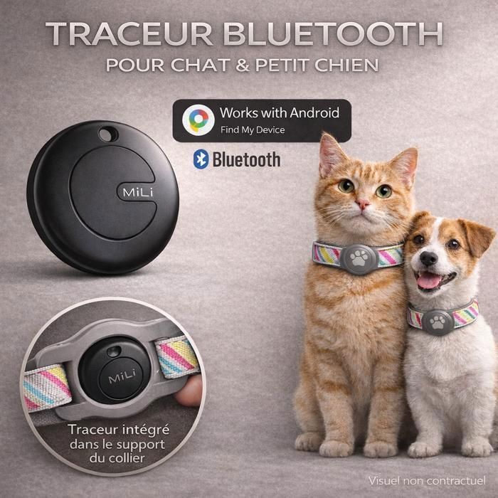 New 2026 - Traceur GPS (sans SIM) Chat ou Chien - localisation via appareil Android - portée 100m via bluetooth