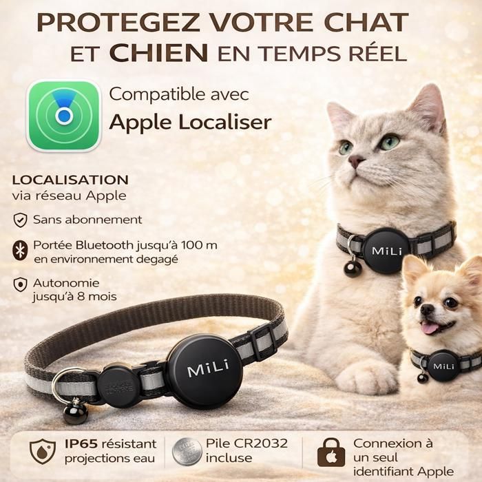New 2026 - Traceur GPS (sans SIM) chat ou chien - localisation via appareil Apple - portée non limitée avec app Localiser