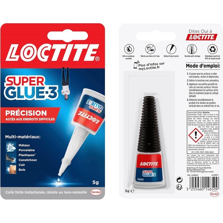 Loctite - Super Glue-3 Précision (flacon de 5 g) – Colle forte pour réparations précises – liquide tous matériaux – transparente à séchage rapide