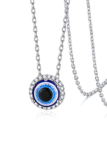 Silvora Collier avec Pendentif l'œil d'Horus Zircon Argent Sterling 925 Massif Femme Homme Chaine 41cm+5cm Blanc-Bleu Egyptienne Amulette Protection de Dieu Bijou Cadeau Maman Père Noël