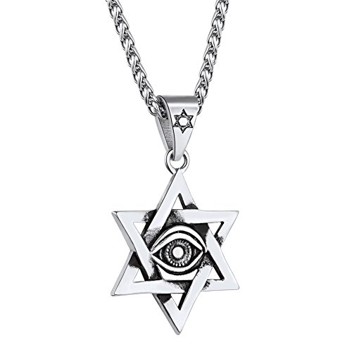 U7 Collier Homme Magen David Acier Inoxydable Pendentif Étoile de David avec l'oeil d'Horus