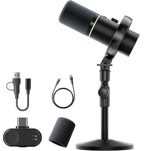 Microphone De Podcast Sans Fil Hybride Pour Pc, Microphone Usb Dynamique Avec Support De Bureau, Logiciel, Annulation Du Bruit, Pour Enregistrement Vocal, Streaming, Création De Contenu, Studio à Domi