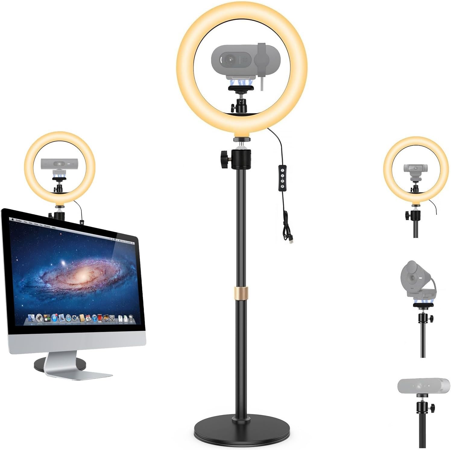 Support magnétique pour webcam Selfie, anneau lumineux de 26 cm avec support de bureau compatible avec les webcams Logitech Brio 500/Brio 300/Brio 100/Brio 4K/C270 C270i C300