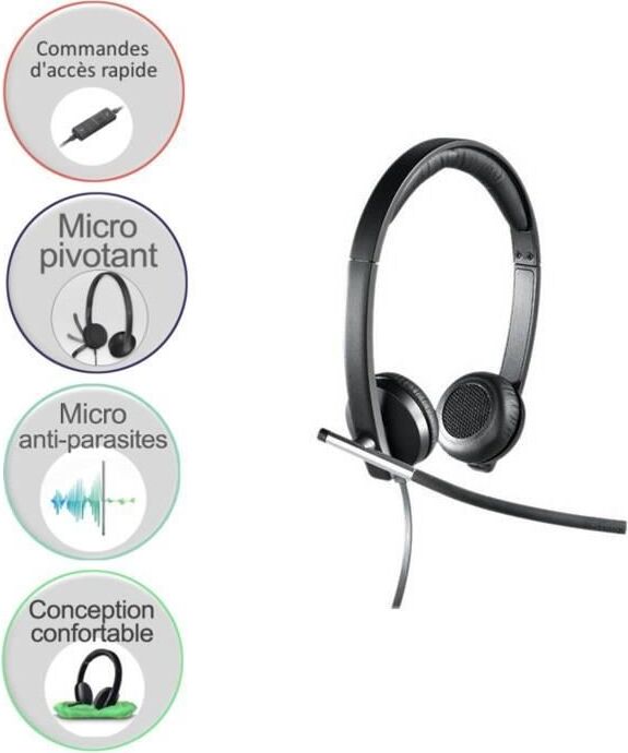 Casque - Filaire - Logitech - H650E - USB - Micro stéréo - Noir